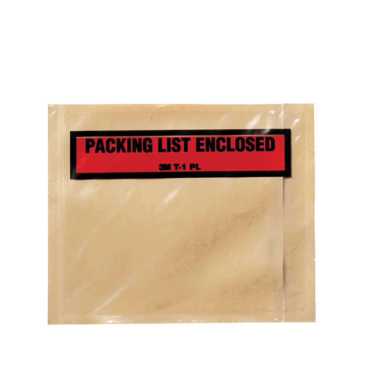 3M™ top print packing list envelope PLE-T1 is a 4-1/2 x 5-1/2 in polyethylene envelope, top printed "PACKING LIST/INVOICE ENCLOSED". We designed this side loading, peel and stick envelope with a high tack rubber resin adhesive that sticks on contact to packages. Oil and water resistant, this packing list envelope safely and securely protects documents from damage throughout delivery. Keep packing slips, invoices, cards and other shipping documents safe and secure with 3M™ top print packing list envelope PLE-T1. This 4-1/2 x 5-1/2 in polyethylene envelope is top printed with the message "PACKING LIST/INVOICE ENCLOSED" and comes with a high tack rubber resin adhesive that sticks immediately upon contact. This peel and stick envelope is oil and water resistant and built to withstand the toughest handling conditions. 3M™ top print packing list envelope PLE-T1 features easy-to-remove liners, exposing high tack adhesive for fast application. This envelope also easily loads documents from the side and is barcode readable. Our top print packing list envelope PLE-T1 works well in situations where the shipping orders are generated in an office area and later applied to the proper package in the shipping area. 3M™ top print packing list envelope PLE-T1 protects your documents throughout the supply chain. At 3M™ we build solutions meant to meet every day challenges with success. Enjoy the benefits of our packing list envelopes and rest assure your essential documents will arrive upon delivery, safe and secure.